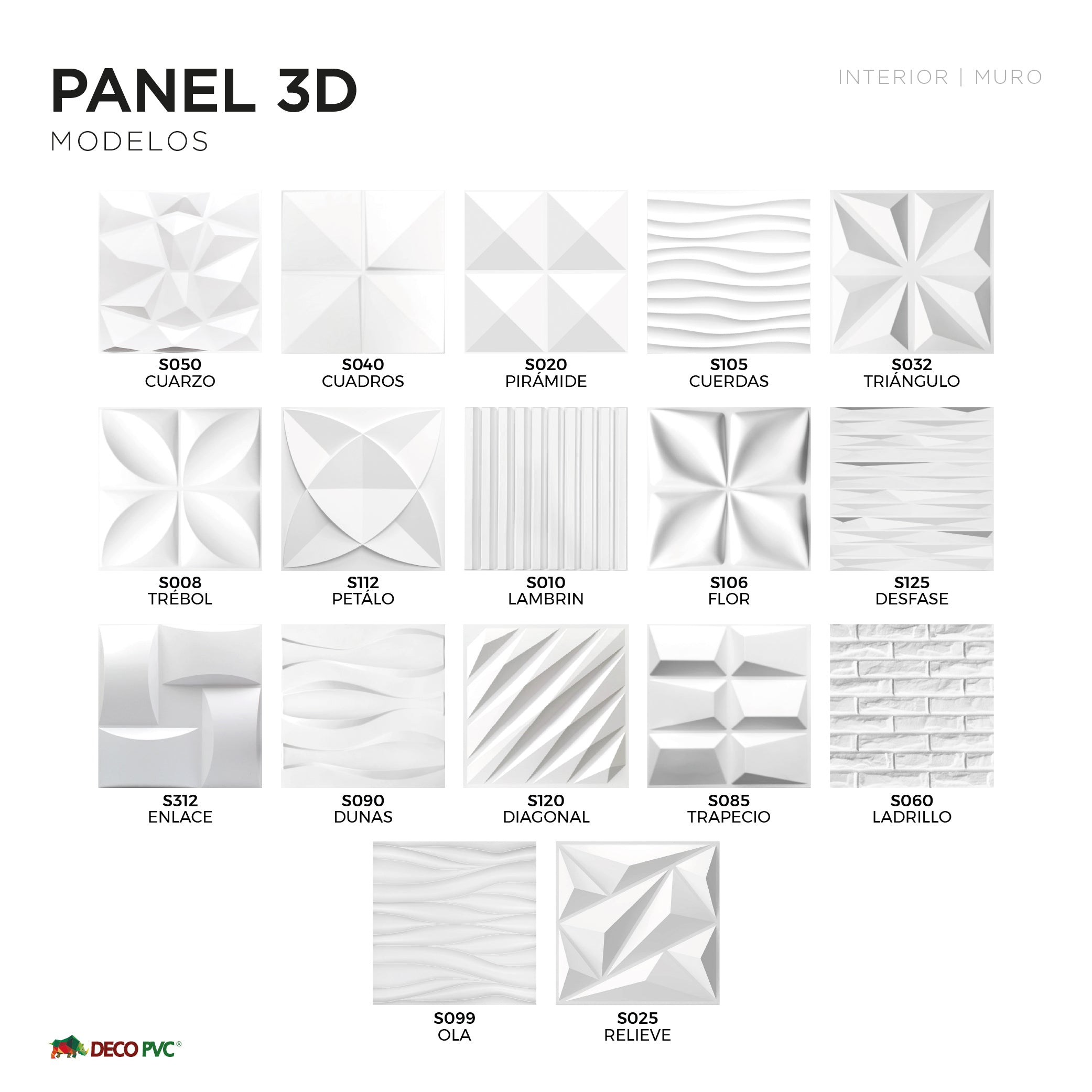 Donde utilizarlos: Blancos en interiores y exteriores / Negros, texturas , Cromados solamente en interiores